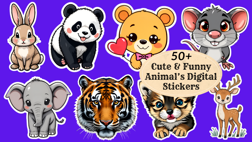 Express your emotions with 50+ Funny & Cute adorable animal digital stickers! Perfect for WhatsApp, Facebook, and social media chats, these high-quality PNG stickers bring fun to both kids & adults. Instantly download and start sharing your feelings in the cutest way!