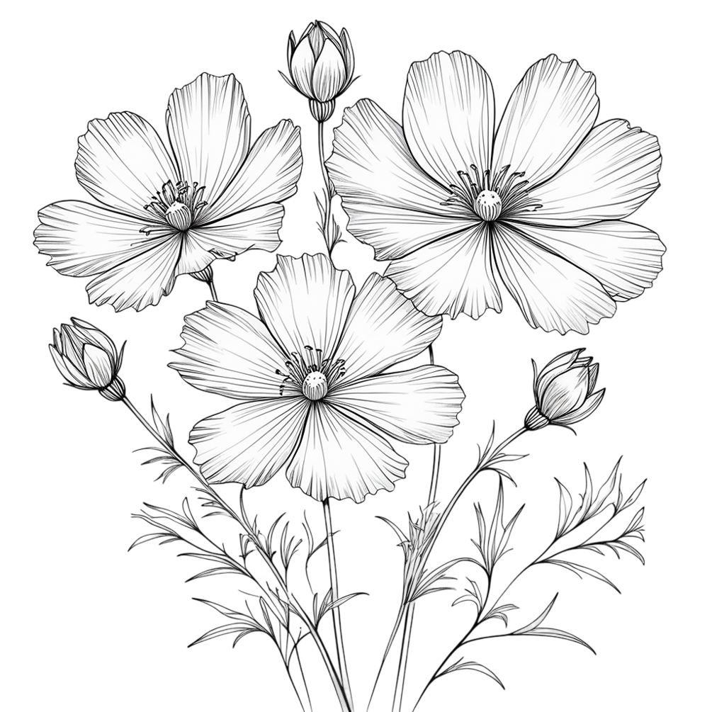 Digital Flower Drawings for Craft & Design