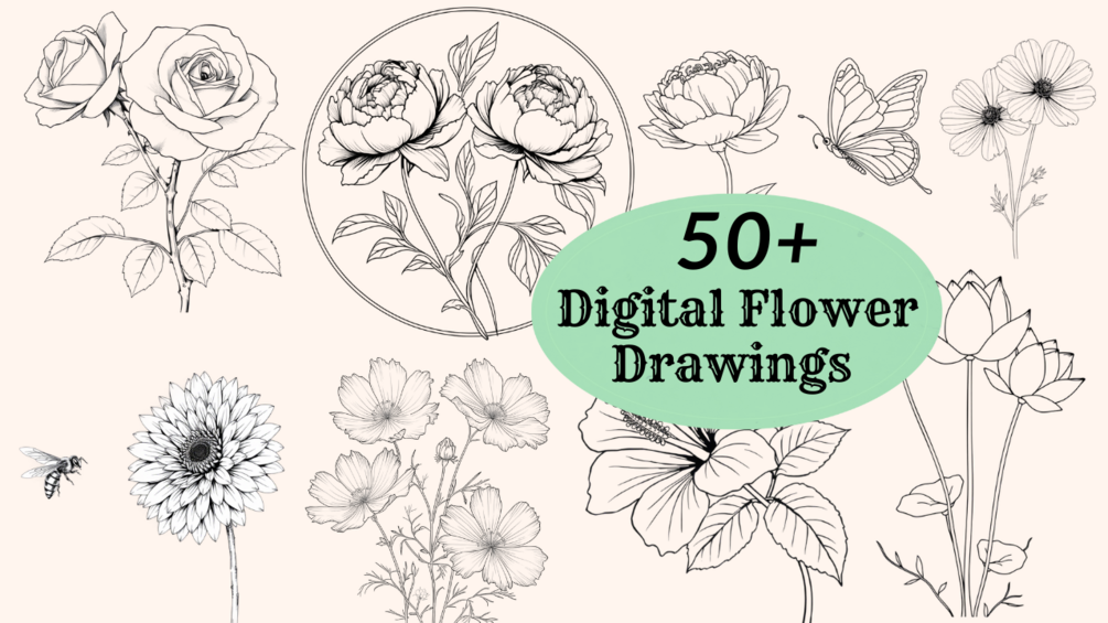 ✔ 50+ Premium Digital Flower Drawings