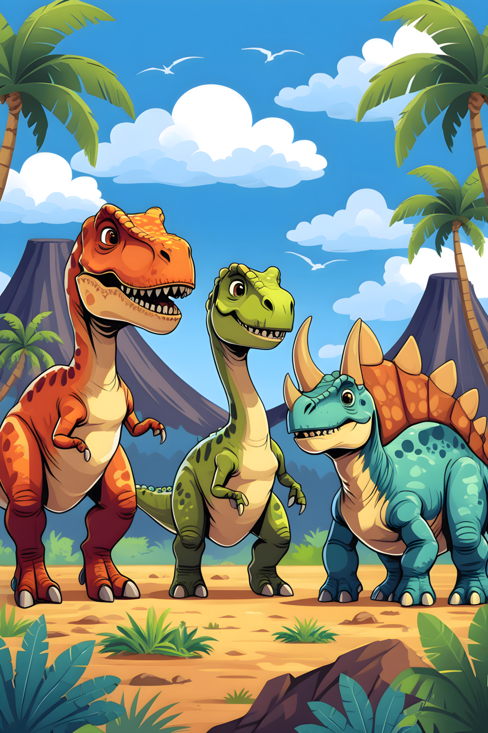 # Colorful dinosaurs in a prehistoric jungle