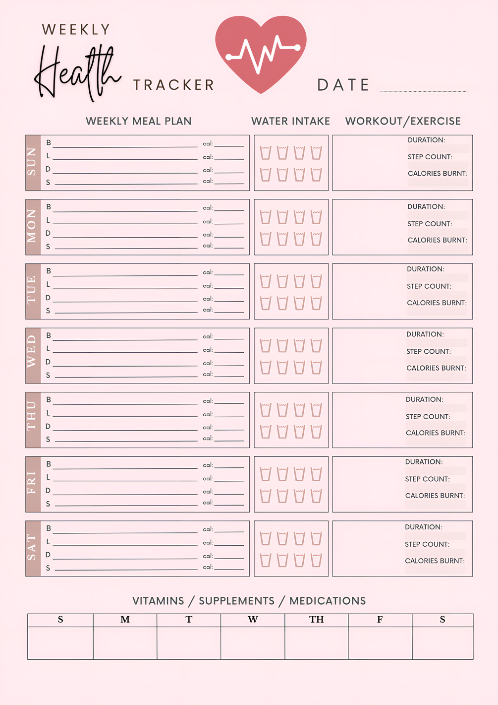 ✅ Weekly Health Tracker – Monitor your nutrition, sleep & hydration.