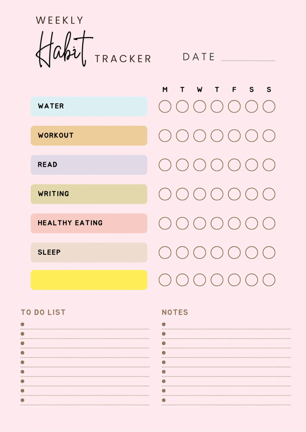 ✅ Weekly Habit Tracker – Track your self-care routines effortlessly.