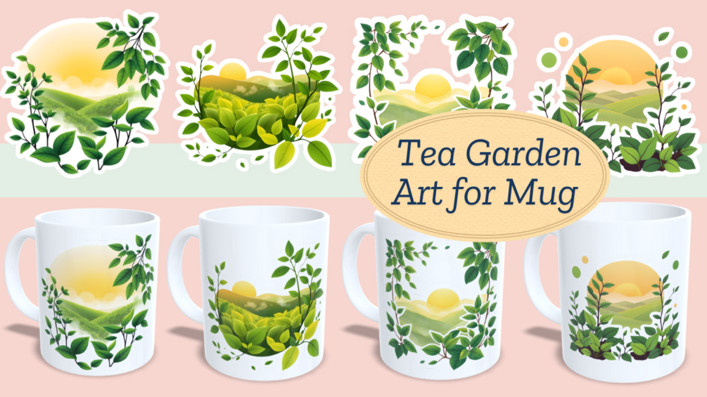 Golden Dawn in the Tea Garden – HD Digital Art for Mug